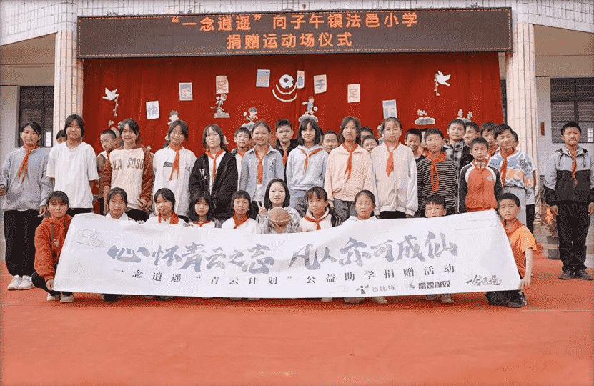 秉持“源于社會,,,,服務社會”的宗旨,,公司積極投身于鄉村振興、、、綠色環保、、、、精準幫扶的社會公益活動當中。。公司結合自身業務特征,,,通過《一念逍遙》產品端向玩家發起“守護青云之志”公益助學活動,,,,2023年上半年,,,,由公司及助學活動組聯合向云南楚雄彝族自治州法邑小學捐建的塑膠操場正式落成,,建成后不僅可以滿足法邑小學學生們活動需求,,,附近村校的孩子也可以前來訓練,,,,惠及附近約13個村校1,000名學生,,促進了鄉村兒童的身心健康發展。。。。