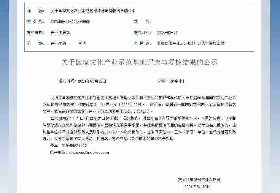 公司新聞 新一批國(guó)家文化產(chǎn)業(yè)示范基地公示,,一競(jìng)技成功入圍